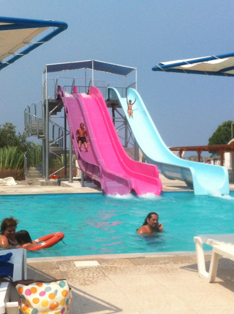 бассейн с пресной водой (лежаки и зонтики бесплатно), водные горки;