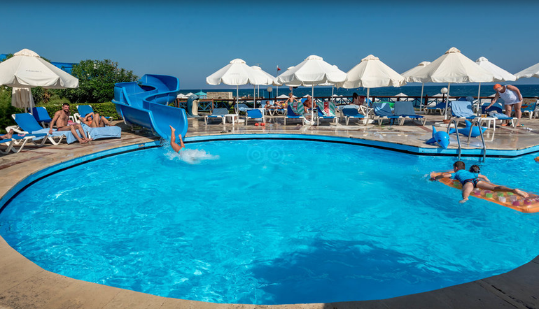 Расположение: отель находится в 25 км от столицы острова - г. Ираклион и всего в 2 км от центра курортного городка Херсониссос, на берегу моря. Рядом с отелем - остановка рейсового городского автобуса