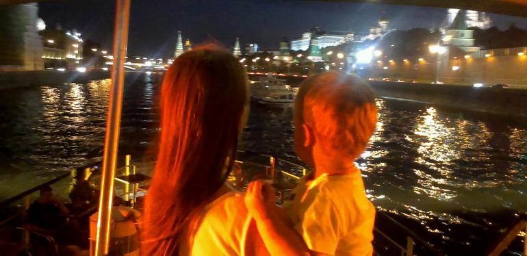 Вечером, когда приехал муж, поехали кататься на теплоходе-ресторане. Первый час сидели нормально, на второй Марсу стало скучно...Ходили по палубе развлекали итд. Короче, романтика не получилось))))