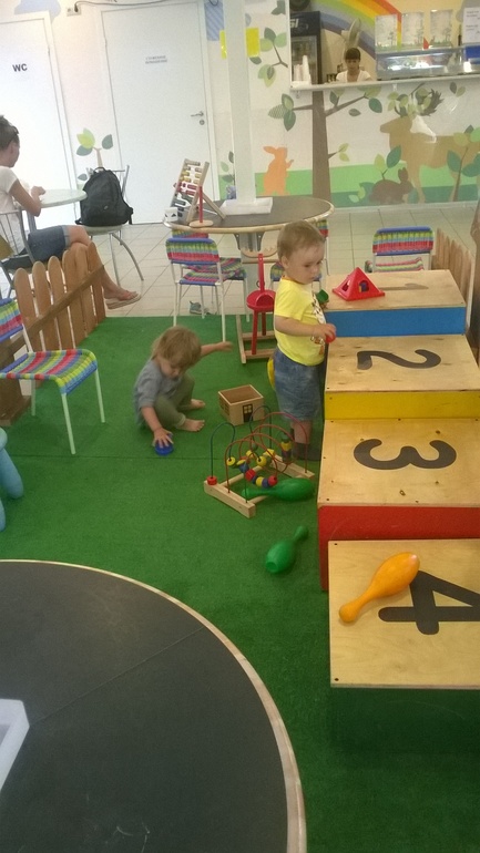 Еще на территории есть детское кафе Радуга. Цены конечно кусаются, но там можно спокойно перевести дух и выпить прохладительных напитков, пока деть развлекается