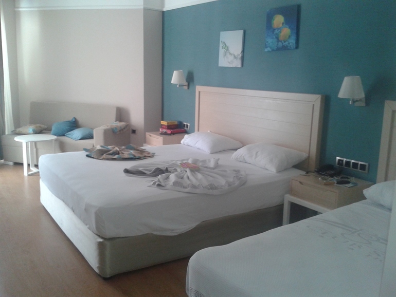 Заселились сразу. От первого предложенного номера мы отказались, главный аргумент это то, что он был на первом этаже рядом с беседками (и это я вспомнила, когда через неделю отдыха пьяная компания пол ночи орала в этой беседке. Тагил да((( но тттт такое было 1 раз). Заселились в номер на третьем этаже, 3х местный и очень просторный (не смотря на то, что нас было 2е).