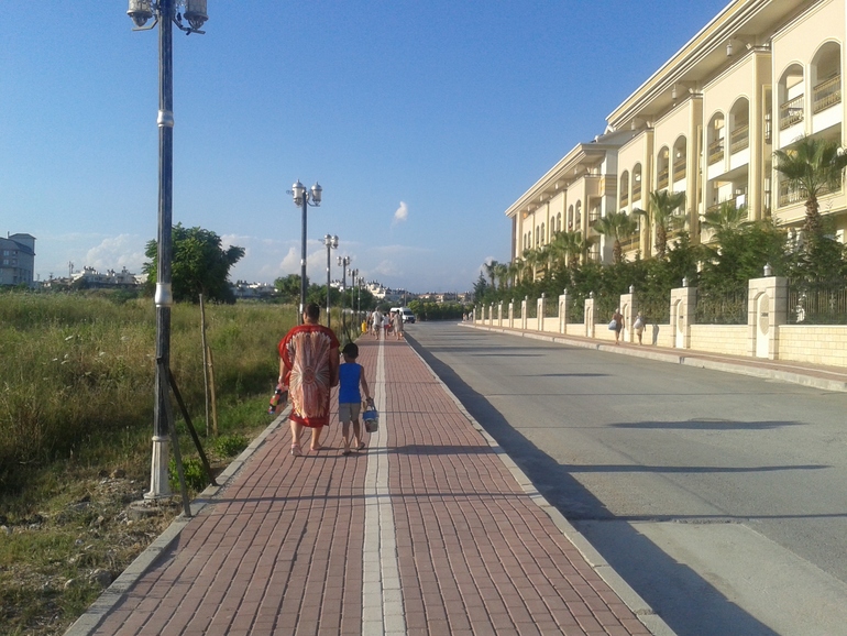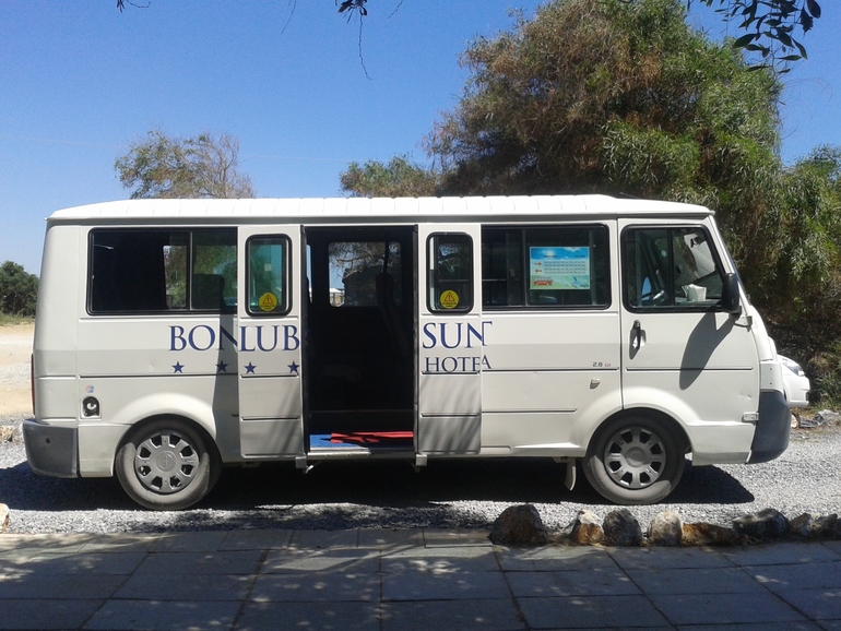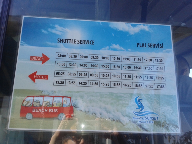 Автобусы ходят до 6 часов. Так, что вечерком пару-тройку раз ходили пешком до отеля. Минут 15 идти, не особо напряжно. Но в жару, конечно, нам было комфортнее на автобусе.
