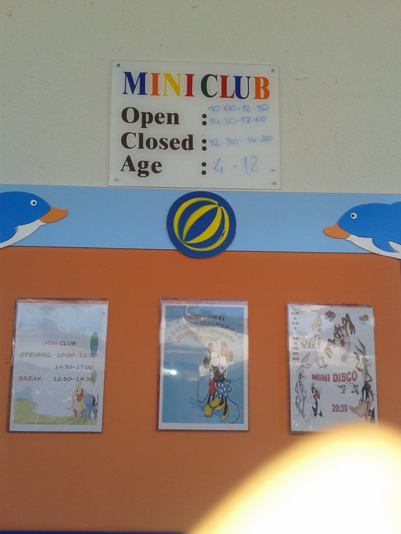 Жене очень понравился мини клуб. Нам сравнивать не с чем, поэтому ребенок остался им очень доволен. Небольшая площадка (двое кочелей, горка, труба) и небольшая комната, где детки рисуют и делают поделки. Всегда можно сделать песочную картинку (5долл), разукрасить юбку, футболку, сумку (10-15 долл). Работают в мини клубе две русские девочки Маша и Лена. Из запомнившегося был день пиццы и день банана (вернее это то на, что мы попали, а так там были день индейца, пекли печенье, конкурсы на самый громкий плюх в бассейне). Короче веселят там детей, развлекают, девочки аниматоры всегда в мыле. Можно оставлять деток постарше. Пока я ходила на массажик моя была в мини клубе с удовольствием.