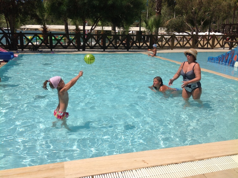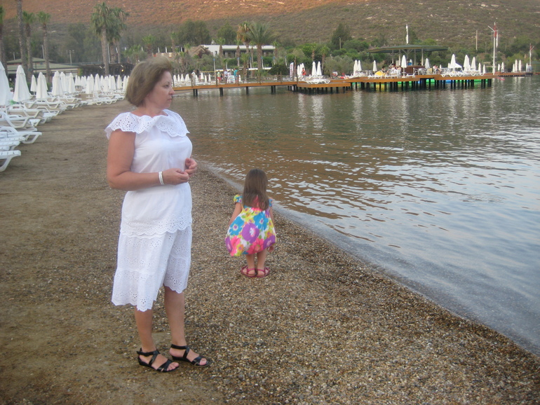 Теперь немного об отдыхе. Отдыхала я со свекровью и дочкой. Это был мой первый отдых без супруга, до этого отдыхали всегда и везде вместе, но не смотря на это отдохнули хорошо. Хотя на мой взгляд, отель на пятерку не тянет. Отдыхали мы 2 недели с 11 по 25 июля в Crystal Green Bay Resort & Spa в Бодруме. Отель небольшой, находится в бухте, поэтому открытого моря не видно, но зато нет волн, что хорошо для маленьких детей. Наш отель находился в 20 минутной езде от аэропорта в очень спокойном и живописном месте, вокруг только горы и лес. Номера простенькие и небольшие, но чистенькие, убирали ежедневно. Отдыхающие, в основном, были турки, азербайджанцы, украинцы, немного европейцев и русских. Персонал по -русски вообще не говорит, только на ресепшене была русскоговорящая девушка, многие даже и по-английски не понимали. Не понравилось отношение к русским, почему-то нас там не очень любят и это заметно было везде, особенно в столовой и на пляже. Сужу не по себе, а в целом, просто на протяжении всего отдыха наблюдала много не очень приятных сцен и даже скандалов, также было много недовольных туристов европейцев. Но зато у отеля есть еще огромный плюс, помимо природа) -это вкусная и разнообразная еда. Через день проводились тематические вечера (турецкие, итальянские, морские). Всегда были свежие фрукты и овощи, очень много зелени, много рыбы и мяса,ну и конечно же, вкуснейшая выпечка. В общем, еда на любой вкус. Анимация была не навязчивая, что порадовало, т.к. нам она не нужна была.