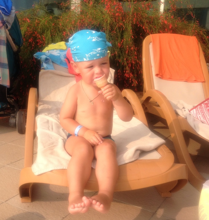 Так ну и питание! Я не знаю, как должно быть, но у нас было все хорошо! Ресторан большой, такого чтобы не хватило мест, не было, всегда кушали практически за одним и тем же местом но в разных залах. Покушать там можно на любой вкус. Утром всегда каши 2 или 3, разные блюда из яиц, выпечка, различные салаты, много видов сыров, сладости, овощи и фрукты. Но из фруктов вкусные были только арбуз, дыня и апельсины, остальное- сливы, персики и яблоки, очень твердые, есть не возможно! Сок сначала боялась даже пробовать, так как начиталась про всякие юпи, но сок всегда очень вкусный, особенно апельсиновый. На обед: 2 вида супа, всегда куриный и какой-нибудь турецкий (шпинатный, йогуртный, свадебный), все мужики, всегда съедали по тарелке супа в том числе и мелкий, а потом уже кто-что хотел! Но младший как никогда и первое и второе и десерт и еще и арбузик сверху, выкатывался из-за стола, зато спал потом часа 3-4всегда какая-нибудь рыба, 3 вида мяса (курица, индейка и телятина), все очень вкусное, куча овощей, зелени, фруктов и т.д. На ужин тоже все очень разнообразно, картошка в разном виде, 2 вида макарон, куча свежих и приготовленных овощей, мясо, рыба. Все очень вкусное. Единственное колбаса у них Беее, и мужу не хватало простой вареной и жареной картошки, они все ее запекают как-то. Также в стоимость путевки входило ежедневное посещение кондитерской на минус 1 этаже с 15.00 до 18.000, там подавались сладости, фрукты и мороженное. Так вот сладости и фрукты мы не ели, а вот мороженное всегда по 2 порции, очень вкусное, я в восторге от карамельного! Мы так всегда полдничали вместе с мелким! Короче голодным там остаться вообще нельзя: завтрак с 7 утра до 11.30, обед с 13.00 до 14.30, ужин с 18.30 до 21.30, помимо этого на территории Олимпийского бассейна с 12.00 до 17.00 действовал Снек-бар со всяким фаст-фудом, салатиками и мясом на гриле, и такой же на территории Аквапарка, да какой-то еще ночной суп, но не пробовали, так как все уже в 10-11 вечера дрыхли без задних ног. Бары действовали также во всех снек барах и главный в Лобби-бар. Напитки не знаю, пиво хорошее, джин ничего, коктейли мне вообще не понравились, в предпоследний день распробовала сухое розовое вино, очень вкусное, рекомендую.