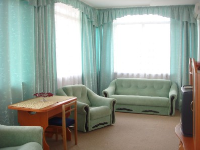 - 2-х местный 2-х комнатный «Полулюкс». Площадь номера: 40 кв. м. В номере: двуспальная кровать, санузел, ТВ, холодильник, кондиционер. +2 дополнительных места - диван.