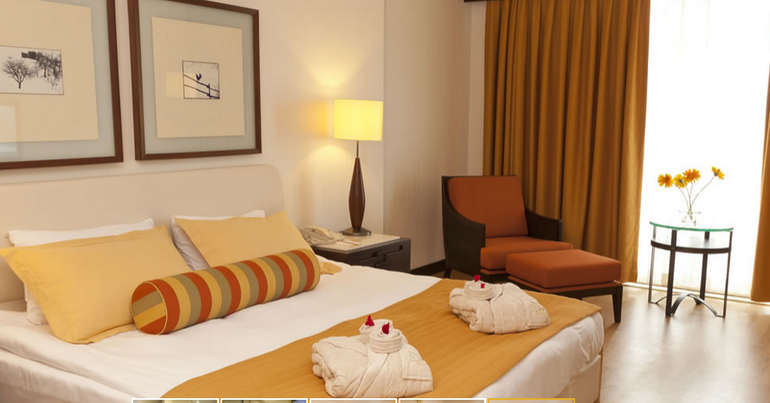В каждом номере имеются: центральный кондиционер, LCD телевизор, спутниковое телевидение (русские каналы), электронная карточная система дверей, телефон с прямым выходом на международную связь и телефон в ванной, мини-бар, электрический чайник (чай, кофе - бесплатно), электронный сейф, балкон, ванная комната с ванной или душем, туалет, фен, пожарная сигнализация, ламинат. Все номера с одной большой двухспальной или двумя односпальными кроватями, с видом на горы или море, все номера для некурящих.