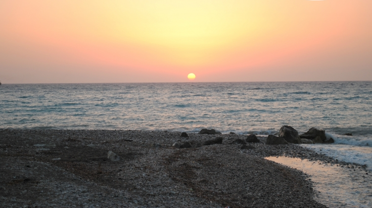 Пляж - галька. Нужна спец обувь, если вы привыкли к песчаным пляжам.