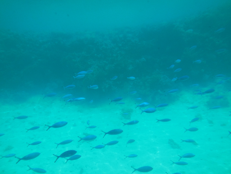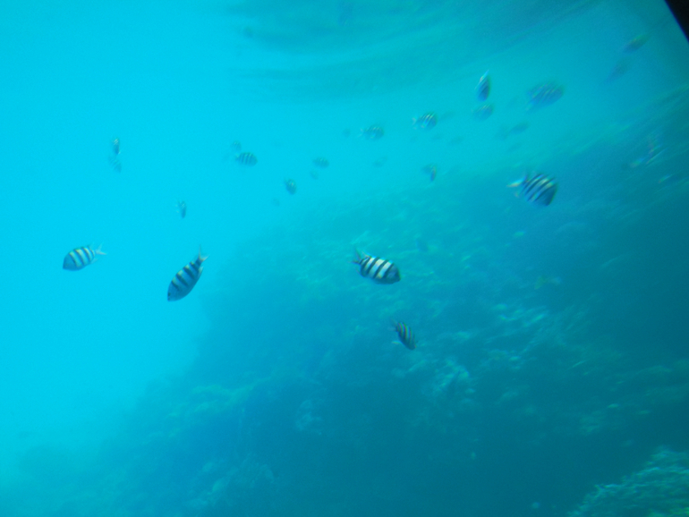 Нам не очень повезло с погодой, всю вторую половину отдыха дули сильные ветра. Я знала, что такое может быть, но не думала, что ветер в Египте это ВЕТЕР. Ночью за окном завывало так, что тряслись стекла. Около берега почти сразу начинаются камни и кораллы, купаться здесь можно только зависнув с маской в форме звезды. Рыбок много, особенно, если подкормить, то приплывают самые разные ))) Детям достаточно было того небольшого участка песочка, что был. Они не большие любители купаться, занимались тасканием воды в ведерках и постройкой сооружений из песка ))) А вот муж был несколько разочарован, что глубина доступна только с пантона. Пантон, к слову, хороший, деревянный. Но нырнуть с него у нас так и не получилось. Сначала мы ездили на экскурсии, а потом погода испортилась и висел красный флаг (((
