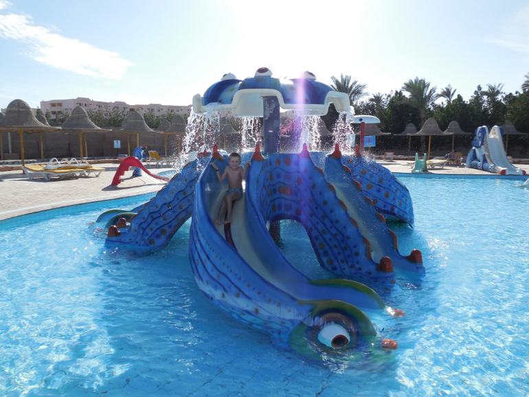 Территорию ежедневно убирают, поливают, чистят все бассейны, моют лежаки. Пляжные полотенца можно получать в 2-х местах у бассейнов и в одном у моря. Этот отель располагает своим аквапарком со взрослыми и детскими горками, множеством бассейнов ( 3 из которых подогреваются). Дети были в восторге! Мы тоже покатались )))
