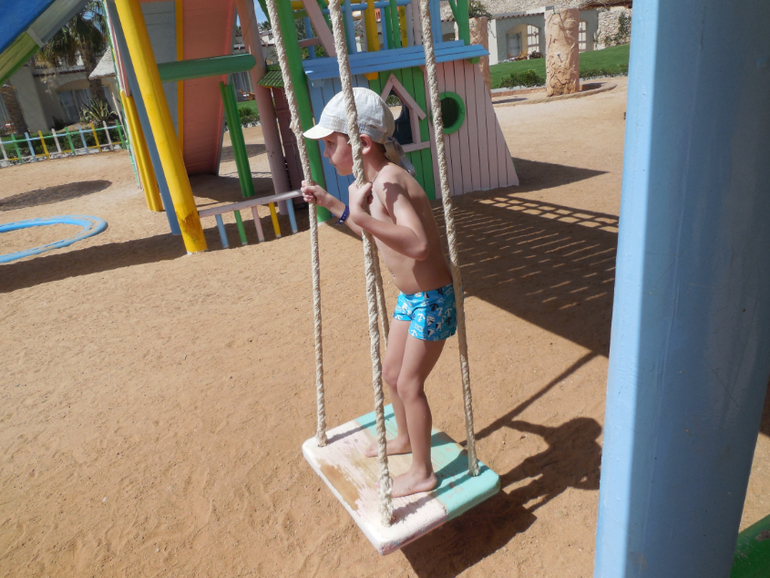 Также есть 2 детские площадки: одна на територрии отеля, другая на пляже.
