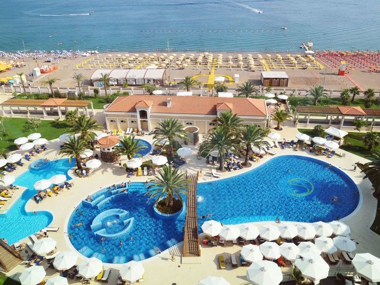 базовый отель с питанием полным пансионом, в котором будут проходить все мероприятия и концерты, большой отель с бассейном, SPA-центром, казино Рояль, большим пляжем, в общем, отель-открытка.
