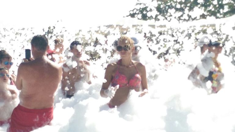 Территория чистая, постоянно моют, всю, каким то моющим дезсредством, им же заправляют пушку для пенной вечеринки на пляже, так что когда данная пена попадает в глаза щипет мама не горюй.