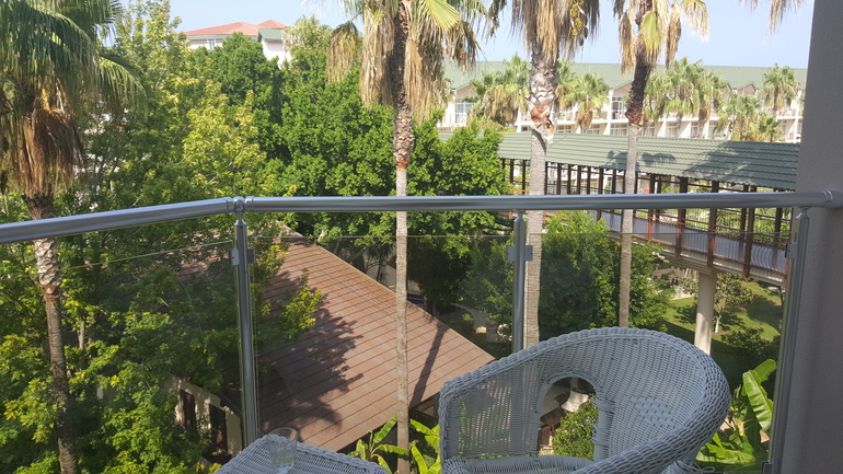 Дорога до отеля 1 час. И вот она заявленная 5. Территория большая, ухоженная и чистая.