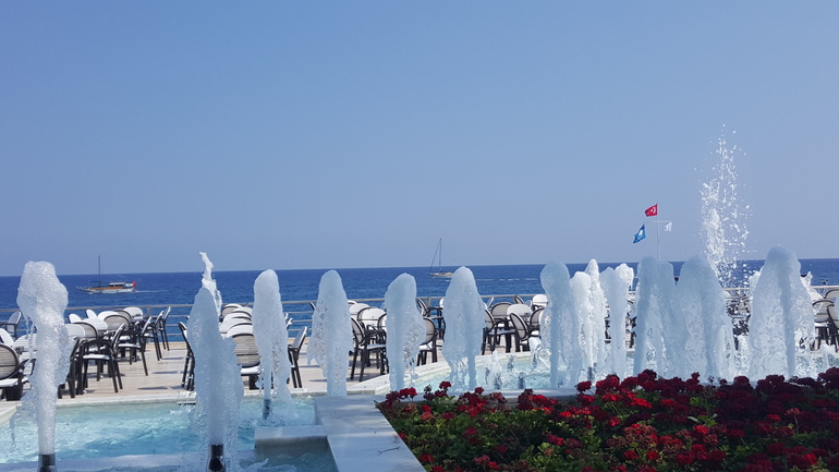 Пляж разбит на зоны: детский, там найдете между лежаками и мини бассик. 12+ зона и 15+ зона в чем между ними разница не знаю, на беглый взгляд одинаково, тусовались на 12+ нам ближе было. Море очень соленое, чистое, но...иногда кусают рыбки, была покусана единожды, Темыч и Полина ниразу.