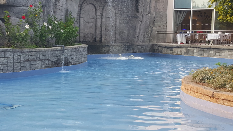 И лебеди, которых можете наблюдать за завтраком, обедом и ужином