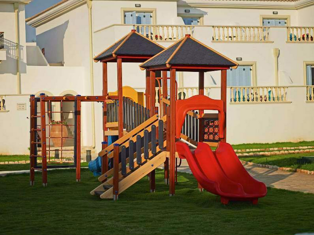 Здесь точно не будет скучно! Отель расположен на огромной зеленой территории, имеет прекрасный SPA-центр, 2 теннисных корта и конференц-зал. У главного бассейна есть детские водные горки.