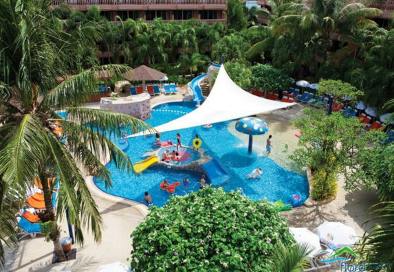 Зеленый уютный отель расположен в тихом месте бухты Карон. Настоящий райский уголок, где можно восстановить силы и расслабиться. Красивейший двухкилометровый пляж с белым песком, изумрудное море и яркое солнце создадут все условия для комфортного отдыха. Это один из лучших отелей для отдыха с детьми, которые не могут обойтись без водных горок в бассейне, особенно малыши. Подробности по этому отелю в моем посте здесь