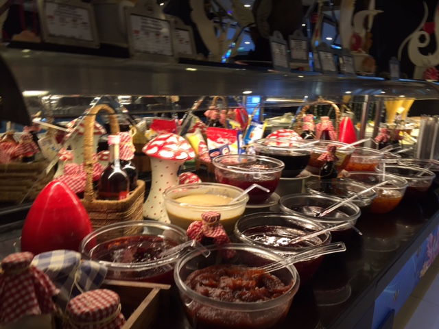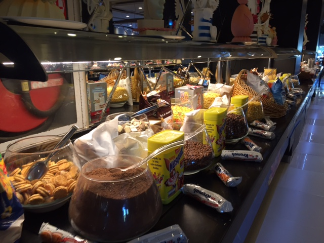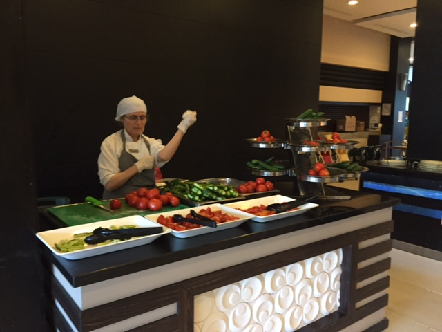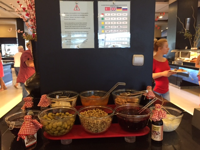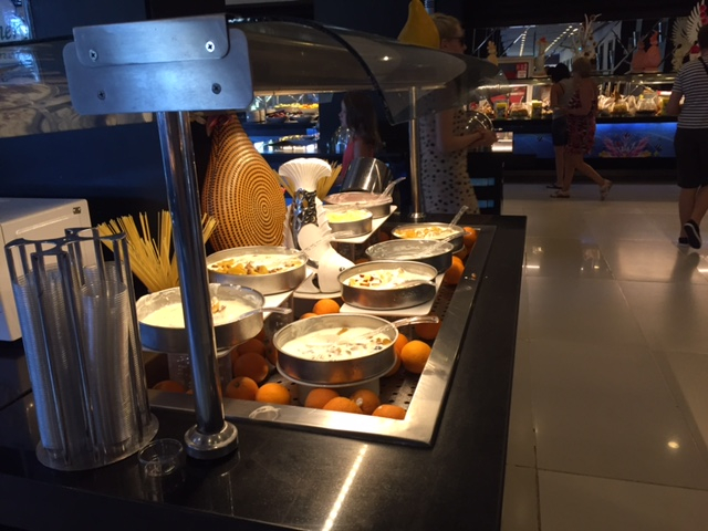 На завтраки есть каши, йогурты, фрукты, булочки, яйца в 4х вариантах ( готовят омлет с овощами, просто жарят, жарят омлет и скручивают, омлет как в наших столовых раньше был с глянцевой корочкой и просто вареные яйца) - уже больше 4х вариантов.