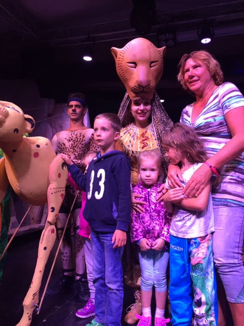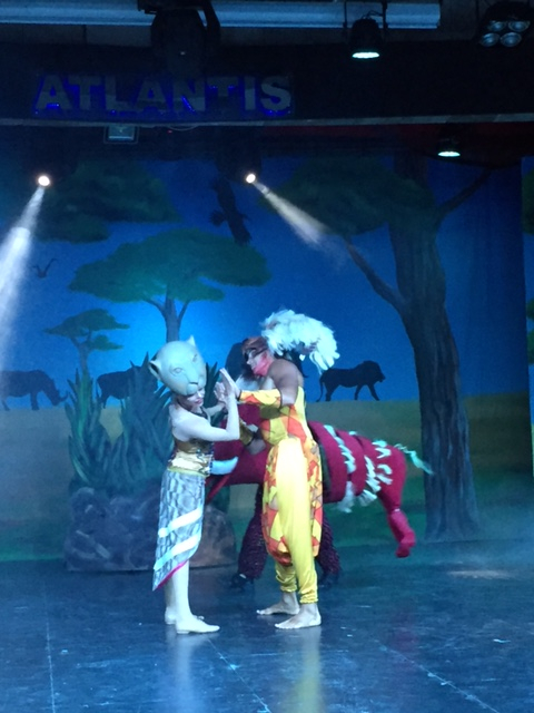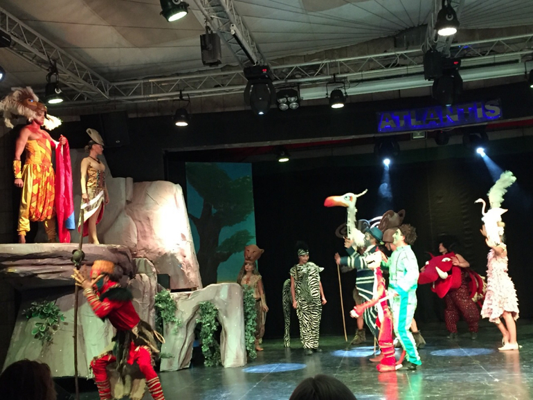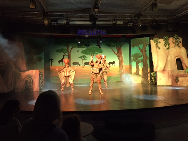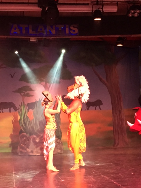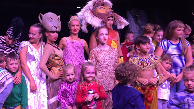 Ну как тут не попадешь, если они попали на празднование Октоберфест и было представление с участием деток Король лев.. Мюзикл сделали потрясающий.. На английском.. Моя по сценарию понимала, когда была речь, спрашивала о чем? Коротко обьясняла и все.. Очень классные костюмы! Все это своими силами.. Причем костюмы на почти весь персонал!!! Тк обслуживание Октоберфеста у всех был в национальном баварском ( +-) насколько это возможно, стиле..