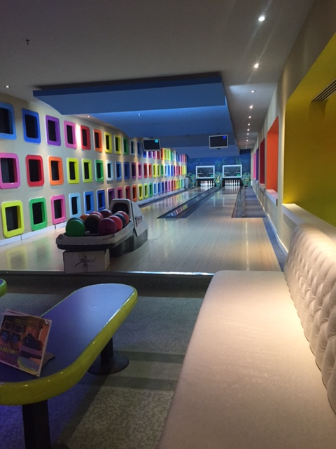 На минус первом этаже диско, игровая комната с автоматами, боулингом и бильярдом..