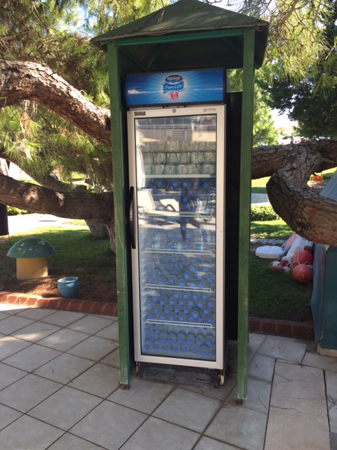 А вообще стоят в разных местах такие тележки с пакетированным соком и холодильники с водой.