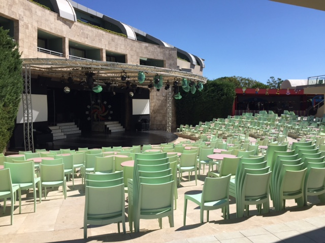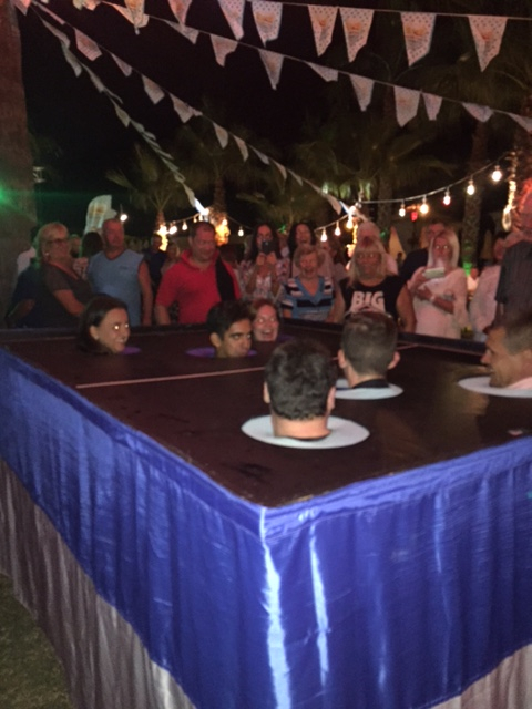 Ну и развлечение.. Кидание творога или крема в лицо аниматору, забивание гвоздей наперегонки, пилить бревно, задувать шарик ( как футбол 2 команды и только головы на столе), для деток батутный город.. Праздник удался, муж вернулся домой в полночь, что на этом отдыхе было впервые:) Тк было уже все вечером, фото получились не все - освещение.. Батуты совсем плохого качества - не выкладываю..