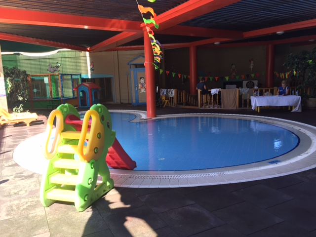 На территории клуба бассейн ( сейчас в нем не купаются, тк вода не прогревается, но поверьте, с детьми находят чем заняться.. Делят их по возрастам, старшие вчера конкурс талантов устроили - они репетировали день, младшие играли, лепили.. До этого лепили на бумаге, потом песком делали картины и рисовали футболки красками ( последнее платно 7 долларов)