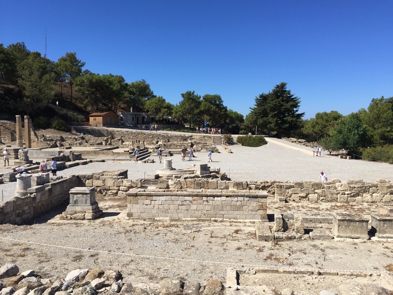 Досуг. Выйти из отеля совершенно некуда. Мы развлекались походами в супермаркет, идти до него минут 10-15. Брали машину напрокат в фирме Баджет, в отеле. По отзывам напротив отеля тоже есть прокатная контора и там вроде дешевле, но поленились идти. Взяли Ниссан Микра на механике за 62 евро в день, пригоняют авто с полным баком, вернуть надо такую же, но у нас никто не проверял. Бензин в Греции по 1,5 евро за литр. Расход у Микра крошечный, я обзавидовалась по сравнению с авто, на котором я езжу в России.) Детское кресло выдается бесплатно, сотрудник Баджета Мила все расскажет и выдаст карту Родоса. Мы объехали большую часть Эгейского побережья, там очень красивая природа, гораздо лучше, чем на восточной части острова. Побывали в древнем городе Камиросе (6 евро с человека), пообедали в таверне на берегу моря (100 евро за 4-х без алкоголя), посетили страусиную ферму и мини-зоопарк. В Долину бабочек не поехали, т.к. бабочки уже отправились на покой, и вообще с удовольствием покатались по острову, наслаждаясь прекрасными видами. Поэтому, если вы водите машину, то брать экскурсии у гидов, средняя стоимость которых 60 евро с человека, вовсе не целесообразно.