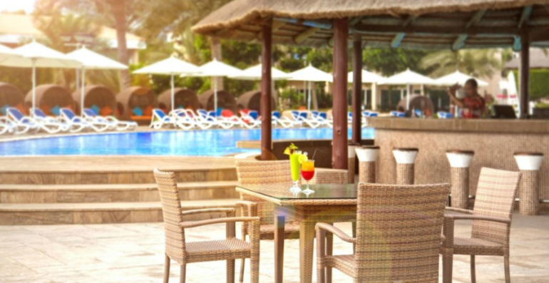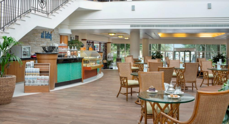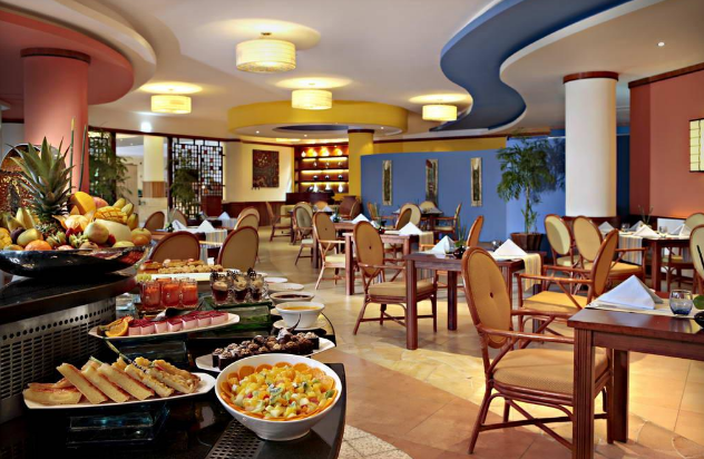 Mozaique - основной ресторан международной кухни, Waves - ресторан морепродуктов на пляже с панорамным видом на океан, Tabu - бар с сигарами и коктейлями, Tropicana - бар у бассейна, Al Falaj - бар в лобби.
