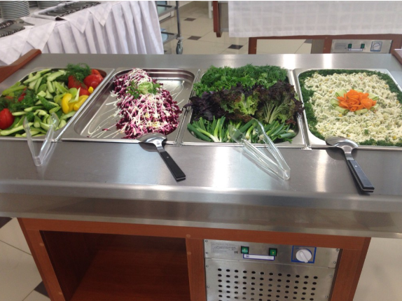 Дополнительную порцию витаминов Вы найдете на так называемом зеленом столе, где Вас будут ждать укроп, петрушка, базилик, лук зеленый, салаты листовые, свежие и маринованные овощи, оливки, маслины, зеленый горошек.