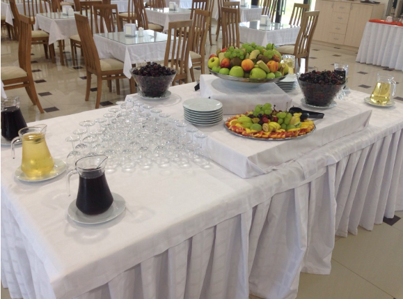 Фрукты подаются на каждый прием пищи. Шведский стол также включает ассортимент вин («Совиньон», «Шардоне», «Мерло», «Каберне») местных производителей.