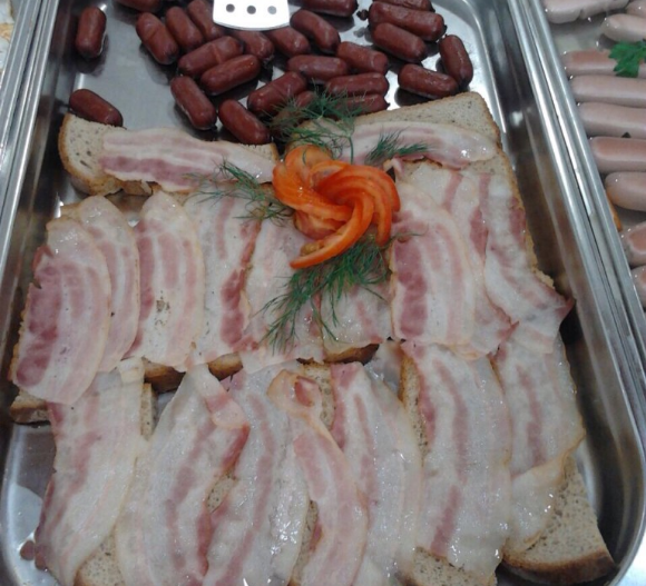 - нарезка мясная из 5 видов мяса (копченая колбаса, балык, ветчина, говядина и свинина копченые)