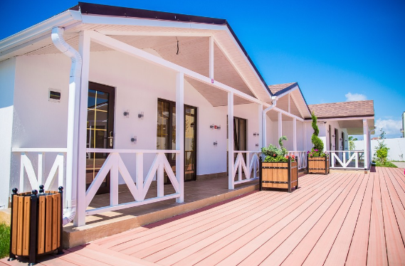 Каждый номер - это отдельный домик с террасой, обустроенный уютно и со вкусом. Гости попадают в свой номер с помощью индивидуального электронного ключа. Заезд возможен с 14 часов, выезд - до 12 часов.