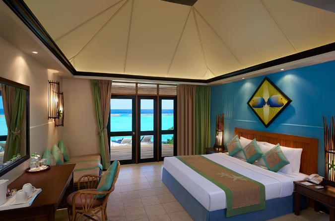 В отеле: Номера на острове расположены в береговых 2-этажных бунгало (по 4 номера), одноэтажных отдельно стоящих береговых бунгало, или сгруппированных в блоки по 2 бунгало в глубине острова, и в отдельных бунгало на сваях в водах лагуны, соединенных с островом деревянным мостиком. 28 Superior Rooms (52 кв.м) - номера с видом на океан, расположены в двухэтажных береговых бунгало (по 4 номера в каждом), удобны для отдыха семей с детьми или больших компаний.