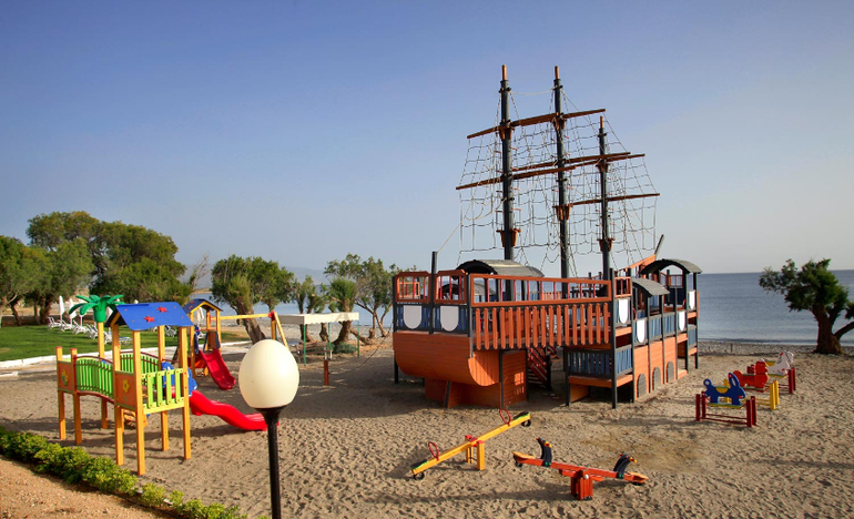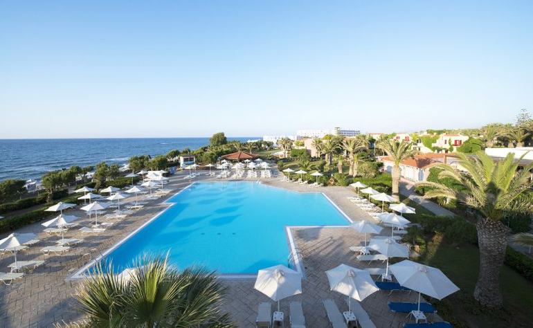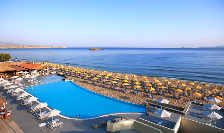 Популярный отель в Малии, с большой территорией и хорошим пляжем. Очень хороший семейный вариант.