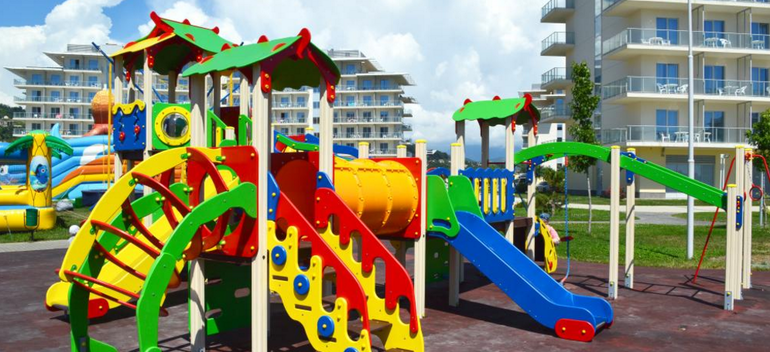 Несколько игровых зон: лабиринт с бассейном из шариков, зона спортивных игр (баскетбол, футбол, хоккей), зона настольных игр и мастер-классов, мультзона и целый "городок" с парикмахерской, детским кукольным театром и магазином «Детский мир Сочи Парк Отеля» (товары для детей всех возрастов. Режим работы с 09:00 до 21:00)
