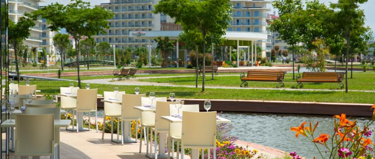Отель состоит из двенадцати восьмиэтажных жилых корпусов. Общая площадь территории отеля, включающая большое количество прогулочных аллей, искусственных водоемов, мест отдыха, детских площадок и торгово-развлекательную зону, составляет более 24 Га.