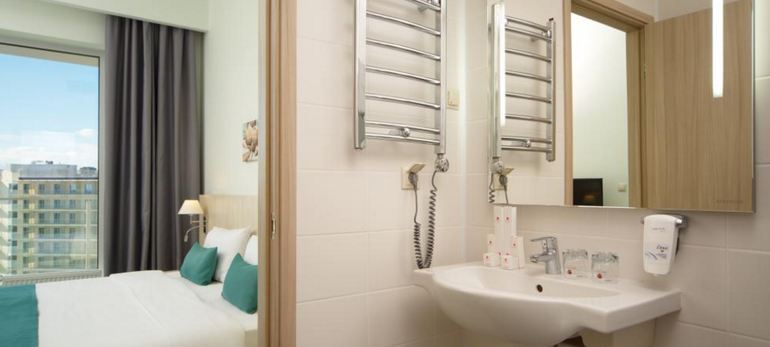 Площадь номера 20 кв.м., две отдельные стоящие односпальные кровати, функциональная мебель, индивидуальная система кондиционирования, холодильник, чайник, ЖК-телевизор со спутниковым телевидением, телефон, балкон , современная душевая кабина или ванна, электронный замок.