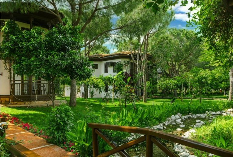 Объяв невероятную природу Средиземноморья и уютно пристроившись в сосновом бору, комплекс занимает 75000 кв.м. Он находится в особенном месте Белека, где река Аджису встречается со Средиземным морем.