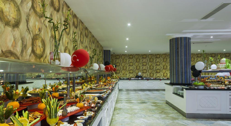 В концепцию входит: завтрак, обед и ужин - шведский стол, поздний завтрак, полдник, снэк, гезлеме, сладости и мороженое в определенные часы (обед, ужин), свежевыжатый сок на завтрак, диетическое меню, ночной суп, местные алкогольные и безалкогольные напитки (10.00-24.00).