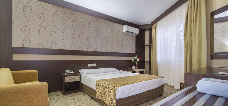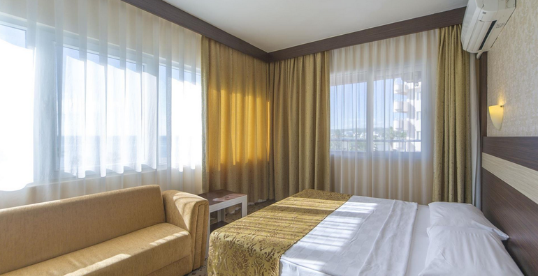 В номерах представлено: индивидуальный кондиционер, мини-бар (ежедневное пополнение водой), спутниковое ТВ с российскими каналами, прямой телефон, интернет (бесплатно), душ, фен, сейф (платно), балкон, диван-кровать, дополнительная раскладная кровать (по запросу).