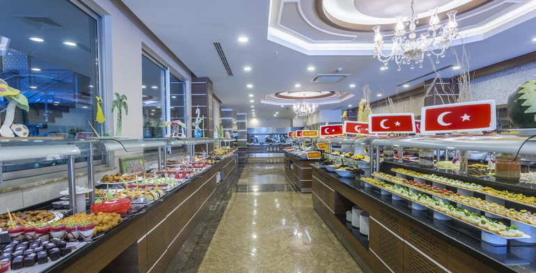 В концепцию входит: завтрак, обед, ужин - шведский стол, разнообразные закуски, сладости, свежевыжатые соки и мороженое в определенные часы, поздний ужин, диетическое и вегетарианское меню, местные алкогольные и безалкогольные напитки (10.00 - 02.30).