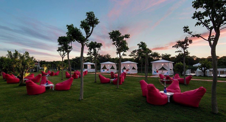 - 6 A'la Carte ресторанов: турецкий, рыбный и итальянский (по предварительной резервации, 1 раз бесплатно), а также «BOAT» ужин на катере», Сabana» (ужин в шатре у бассейна; предлагаются различные виды меню), «Beef Grill Club» - ресторан блюд, невключенных в концепт (для всех гостей платно, ресторан «The Beef Club» бесплатный для гостей вилл)