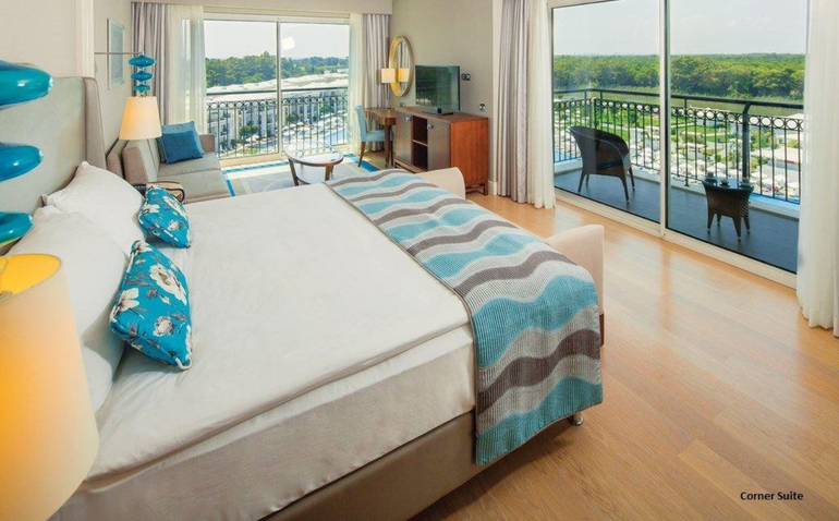 - 42 Family Pool Suite (80 кв.м) в семейных сьютах, 2 спальни разделенные дверью, 2 ванные комнаты, делятся на 2 категории: Suite Garden - с выходом к общему бассейну без балкона, Suite Balcony - с балконом, макс. 5+1 чел.