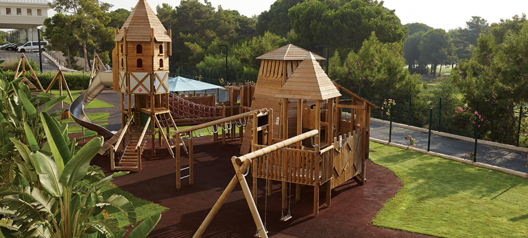 4. Основное. Как для меня... если вы с детьми - вам точно сюда. Первый отель, в котором старшего сына (9 лет) я видела только на завтраке, ужине, ну и спал он в номере ))) Все остальное время он носился где-то с аниматорами - поло, футбол, дартс, лото, поели мороженого, пинг-понг, полазили в веревочном парке, посмотрели кино и т.д. А для малявок прекрасные детские комнаты с игрушками, пеленаторами, стерилизаторами бутылок, а так же качельки, горочки... в общем много-много всего... Лучшей детской анимации я не встречала! Единственная проблема... Мамочки малявок, которые уже без памперсов, но до взрослого унитаза не доросли! Что на море, что возле бассейнов до туалета маленькими шажочками не близко и детских унитазов там нет. Для себя эту проблему со своей трехлеткой решила так - приходилось носить с собой горшок. Не очень, конечно, удобно... Но все же удобней, чем ломиться через весь пляж с желающим в туалет ребёнком. И если у бассейнов это расстояние не так велико, то на пляже с этим ОЧЕНЬ не удобно. Но повторюсь, проблему эту решила при помощи отельного горшка, поэтому мое впечатление от отеля от этого не ухудшилось.