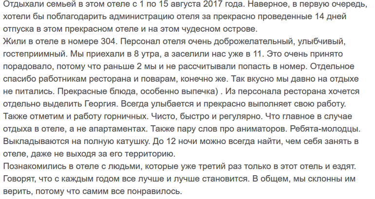 3. И читая историю отзывов, туристы возвращаются в него, и замечают, что с каждым годом питание, сервис в отеле все лучше и лучше.. А это и правда приятно..