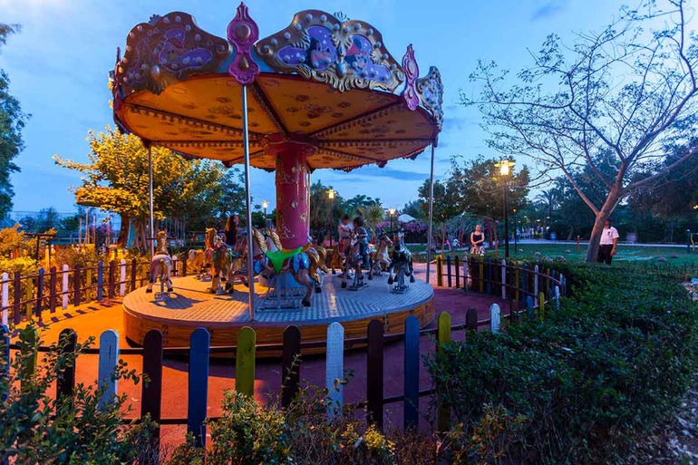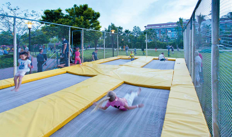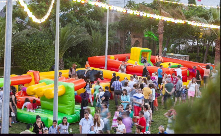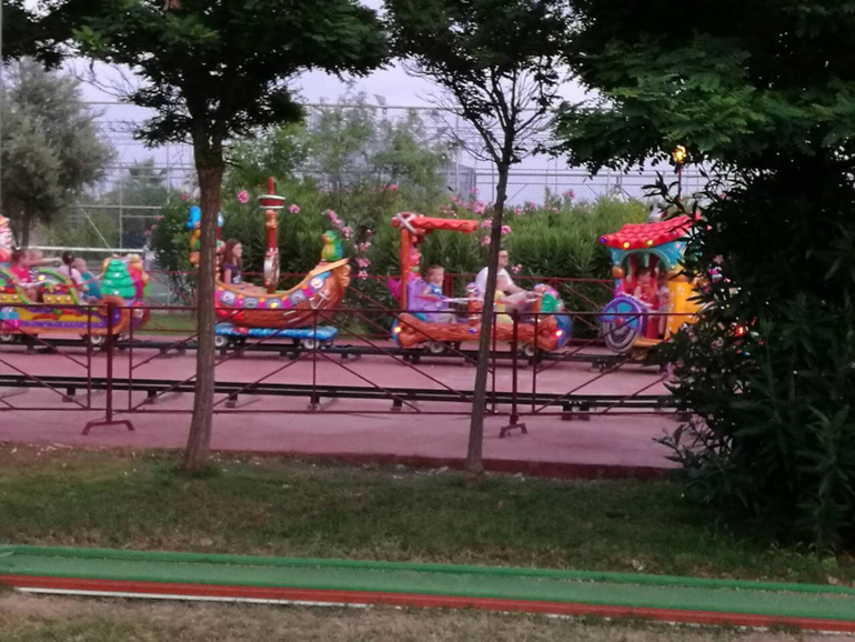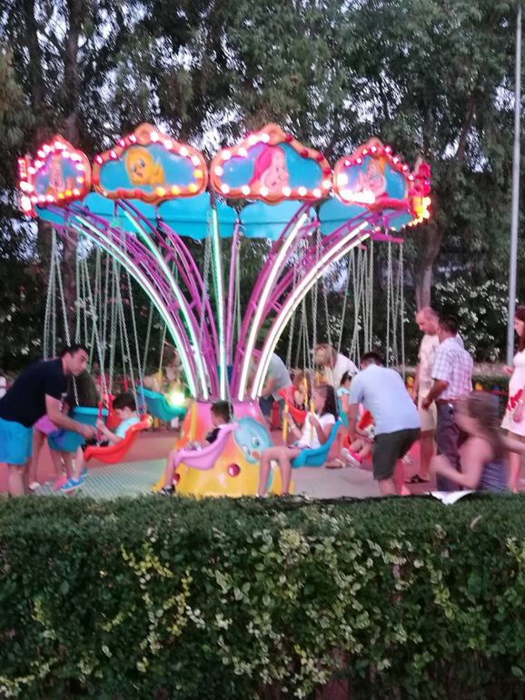 Луна- парк: бесплатно, с 19:00 - 20:30, по погодным условиям; 4 батута, 2 карусели (ромашка, лошадки), детский паровозик.