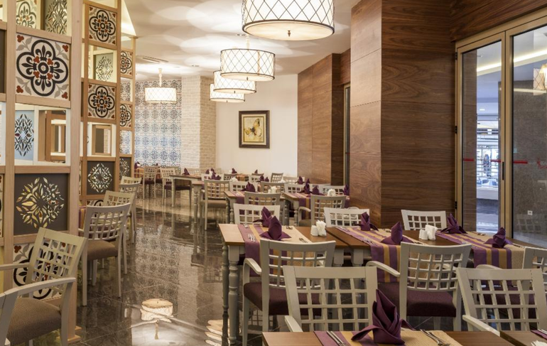 Рестораны a la carte/шведский стол: Sofra: турецкая кухня, работает с 19:00-21:00. Flamingo: итальянская кухня, работает с 19:00-21:00. В ресторанах необходима предварительная резервация. Возможно 1 бесплатное посещение ресторана.