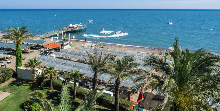 Отель расположен на берегу моря, в поселке Богазкент, в 7 км от Белека. Состоит из шести 4-х этажных зданий. Отель ориентирован на семейный отдых с детьми. Небольшая, но удобная и ухоженная территория, удобный пляж, хороший мини-клуб, прекрасное обслуживание. Есть русскоязычный персонал.